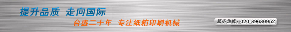 歡迎訪(fǎng)問(wèn)廣州臺(tái)盛紙箱機(jī)械有限公司! 收藏臺(tái)盛 在線(xiàn)留言 關(guān)于臺(tái)盛  中文版     ENGLISH