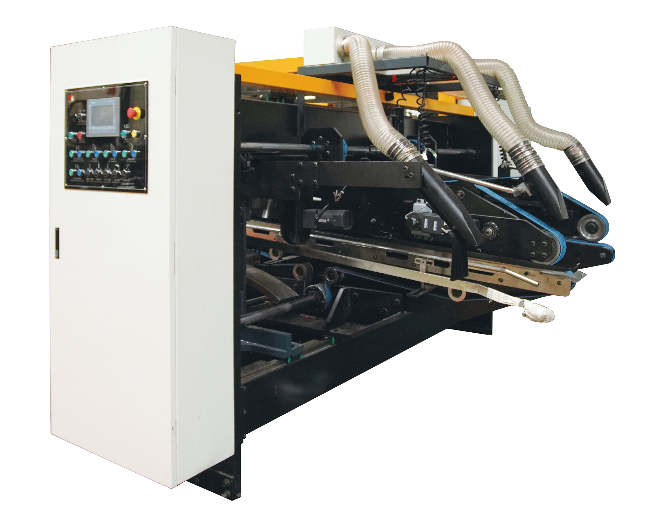 整機(jī)由智能化電腦一鍵控制,輸入訂單后只需按下運(yùn)行按鈕,各組合部自動調(diào)整規(guī)格尺寸,無需人工單獨(dú)調(diào)整。